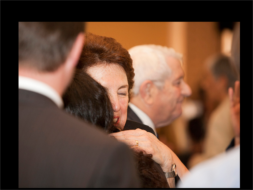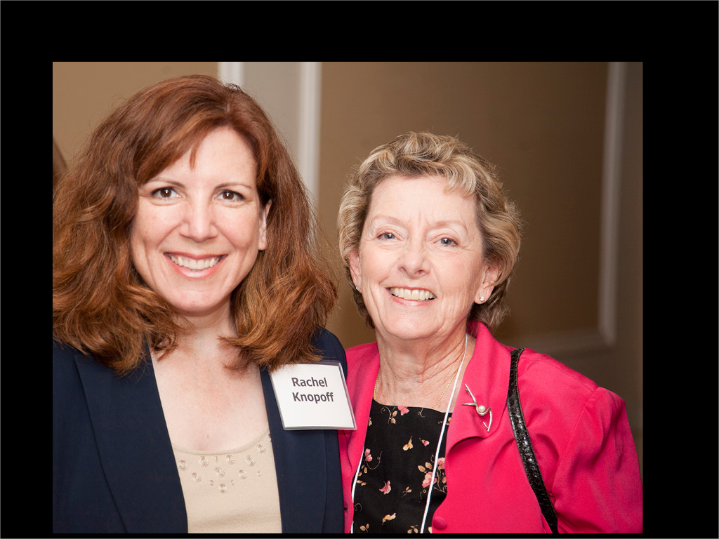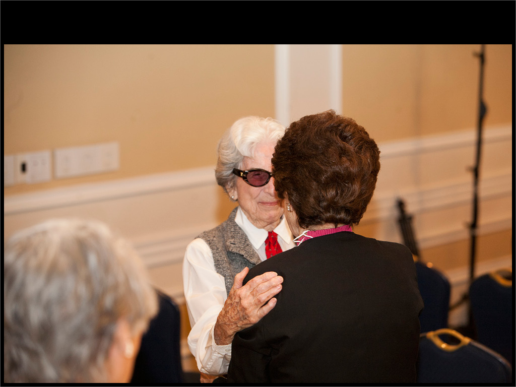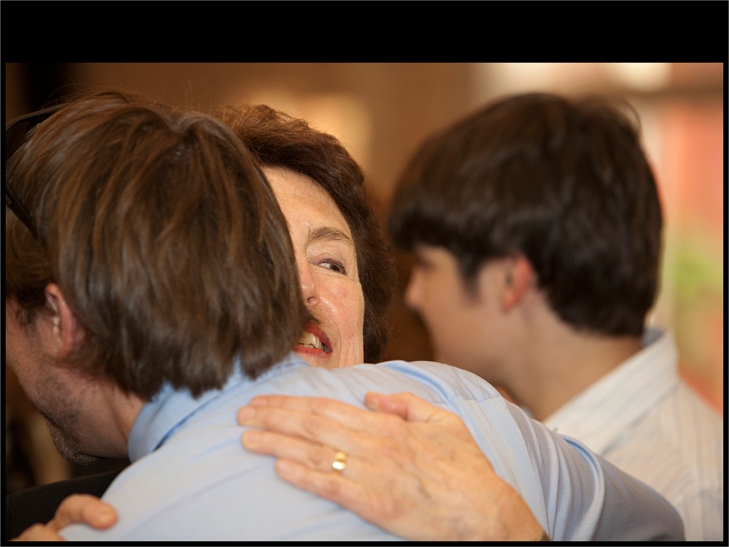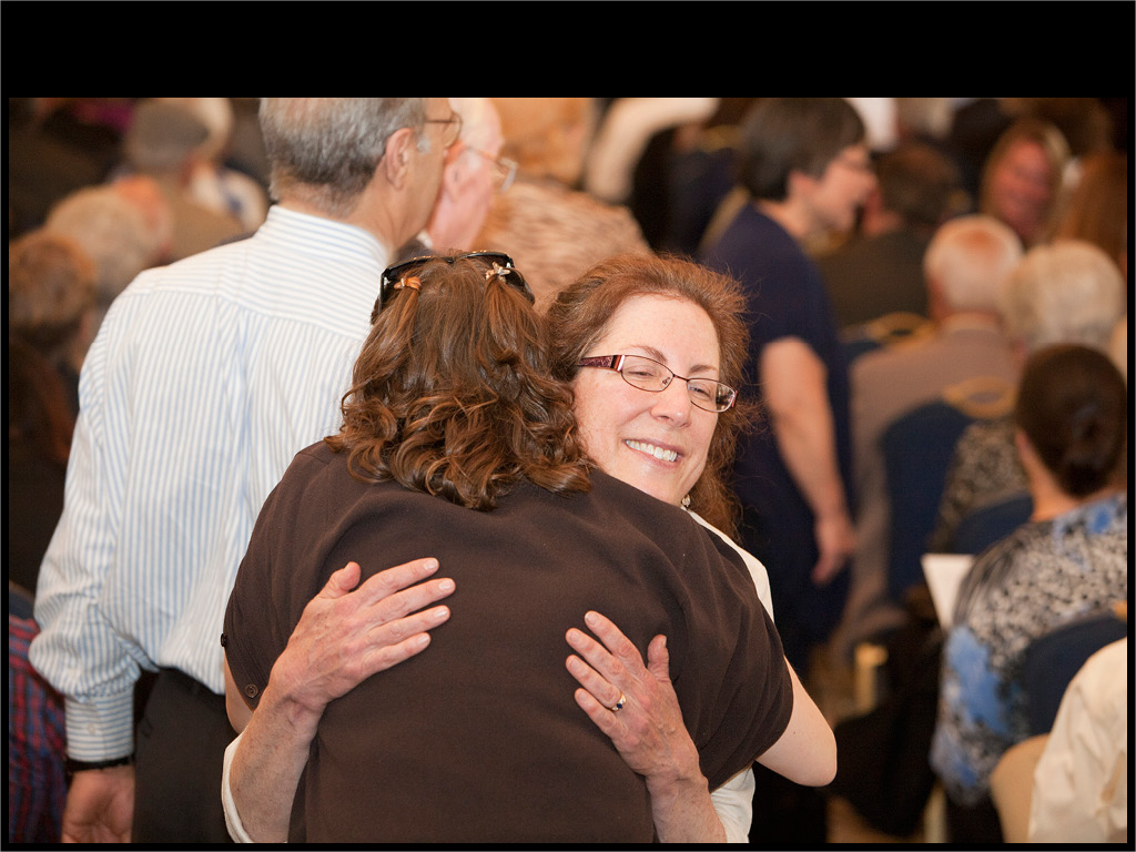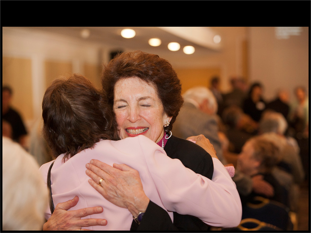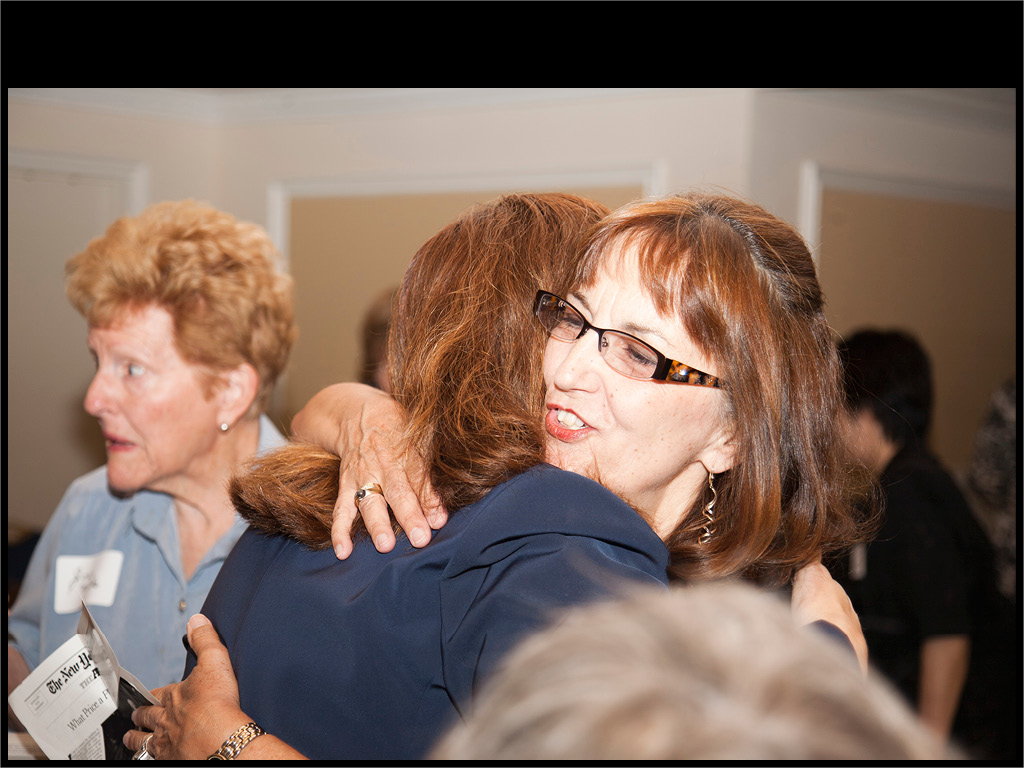 Kathy Jackson hugging Rachel Knopoff; Joan Mills in back
