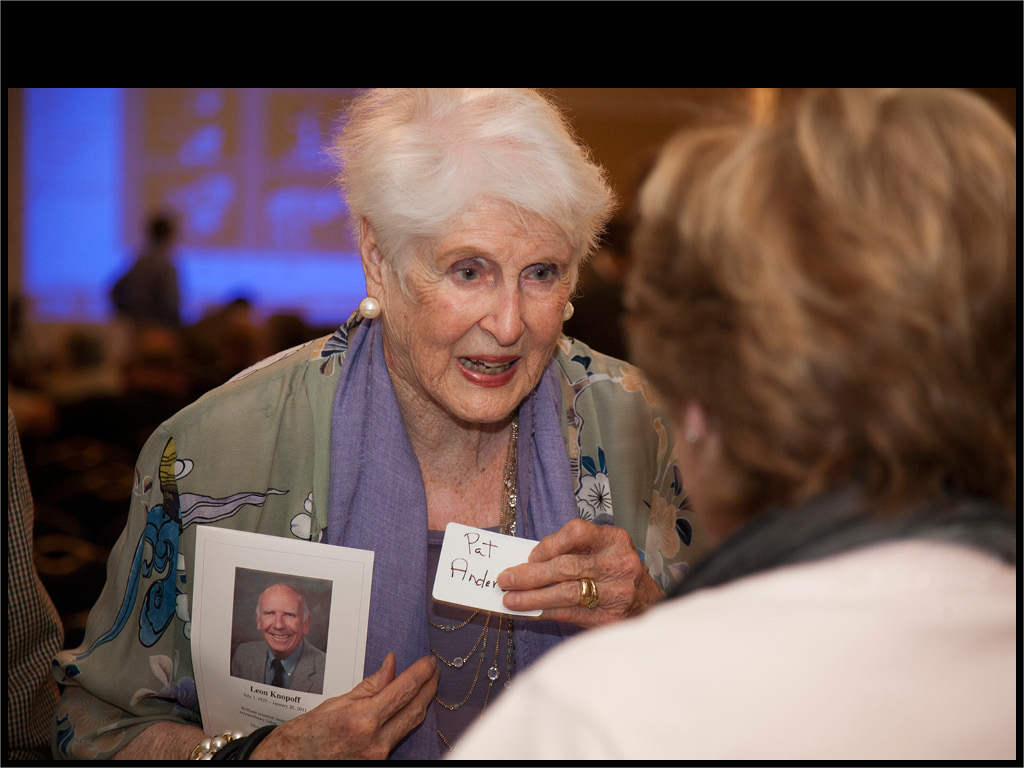 Andrew Fredricks talking with Jo Knopoff; Corinne (Mrs. Bob) Fredricks at left