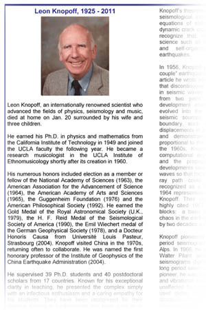 Leon Knopoff, an internationally renowned scientist who advanced the fields of physics, seismology and music, died at home on Jan. 20 surrounded by his wife and three children.