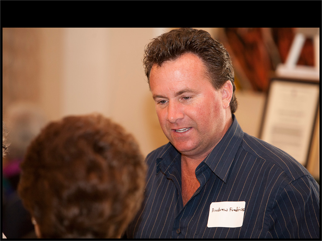 Andrew Fredricks talking with Jo Knopoff; Corinne (Mrs. Bob) Fredricks at left